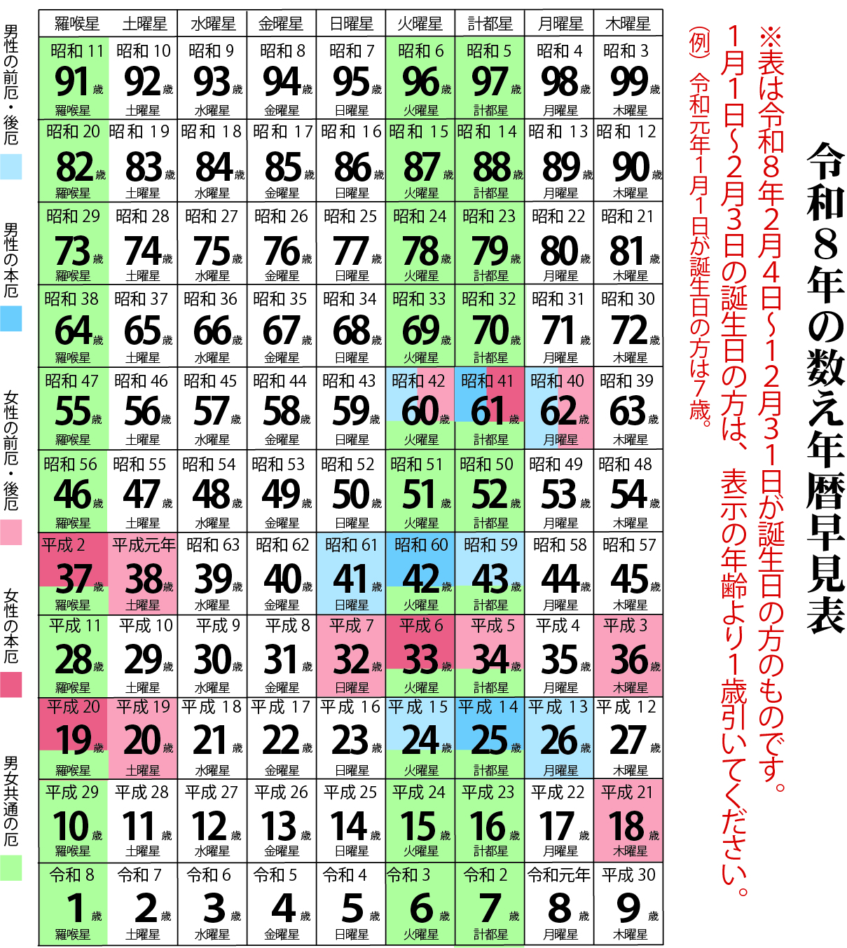 令和8年の暦早見表
